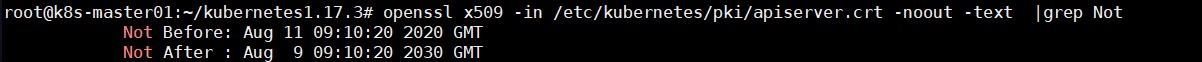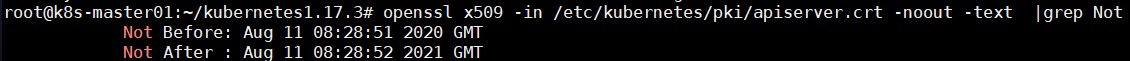 openssl x509 -in /etc/kubernetes/pki/apiserver.crt -noout -text |grep Not