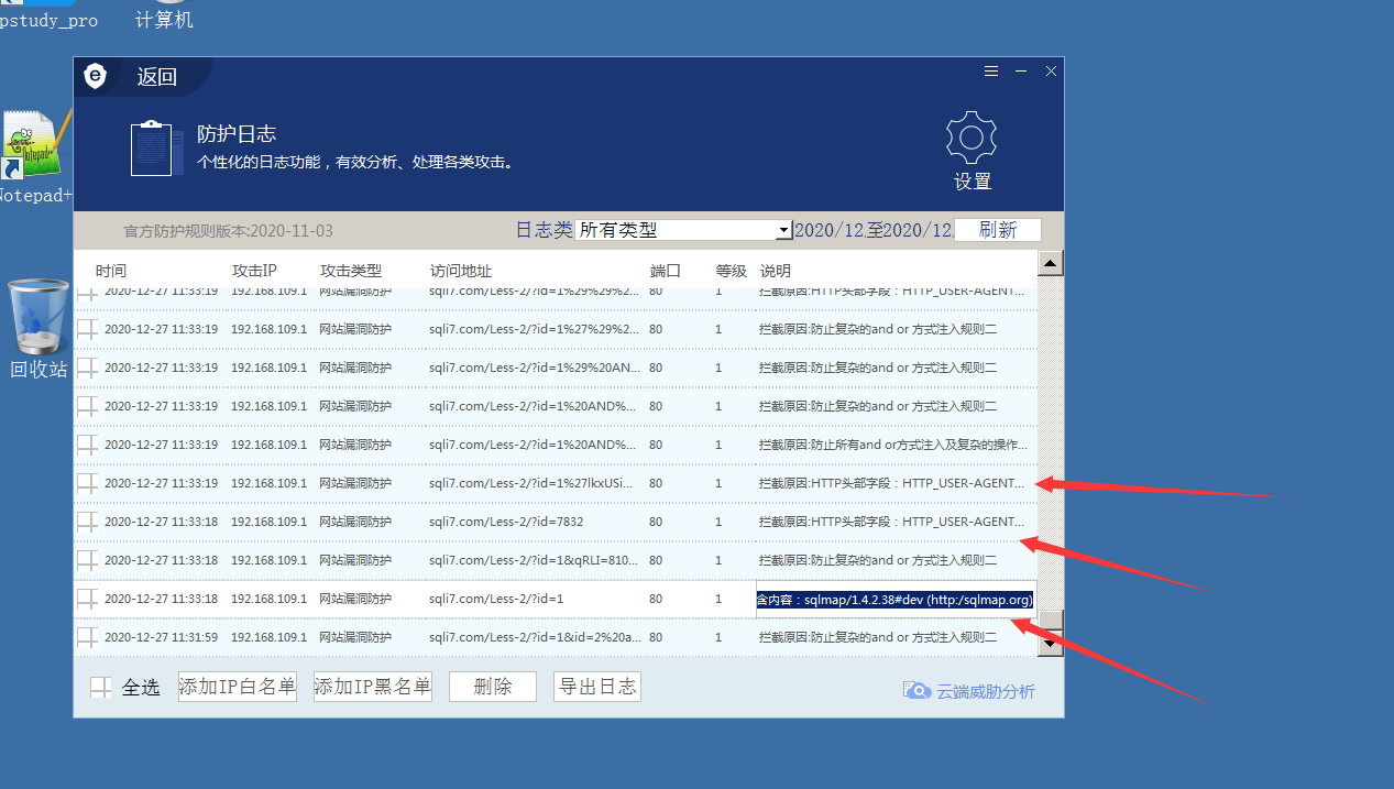 通过防护日志可以看到安全狗对sqlmap的useer-agent进行了拦截,所以我们只要修改了user-agent就可以绕过安全狗对sqlmap的拦截