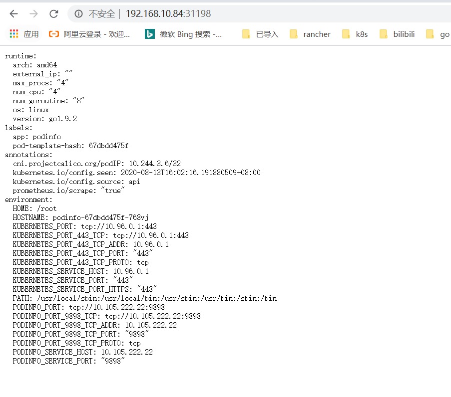 通过service的NodePort端口访问podinfo,http://<K8S_PUBLIC_IP>:31198