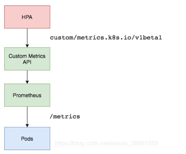 Core metrics(核心指标)只包含node和pod的cpu、内存等,一般来说,核心指标作HPA已经足够,但如果想根据自定义指标:如请求qps/5xx错误数来实现HPA,就需要使用自定义指标了。