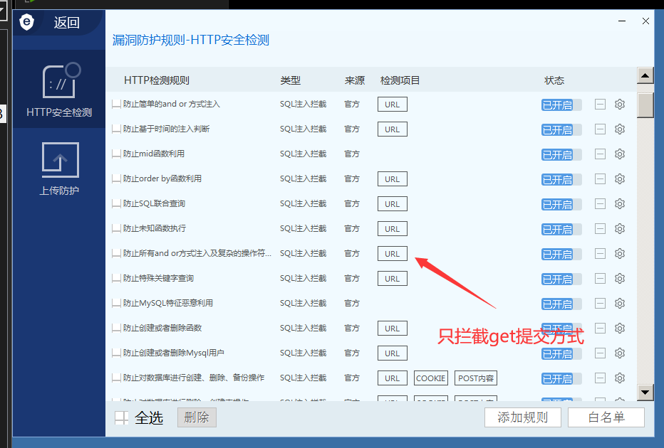 waf有很多检测规则,但是一般不会开启全部功能;因为部分拦截规则开启后可能会拦截用户的正常访问,所以大部分管理员不会修改waf的默认配置,当然也不排除有些管理员为了安全性而开启全部拦截规则。