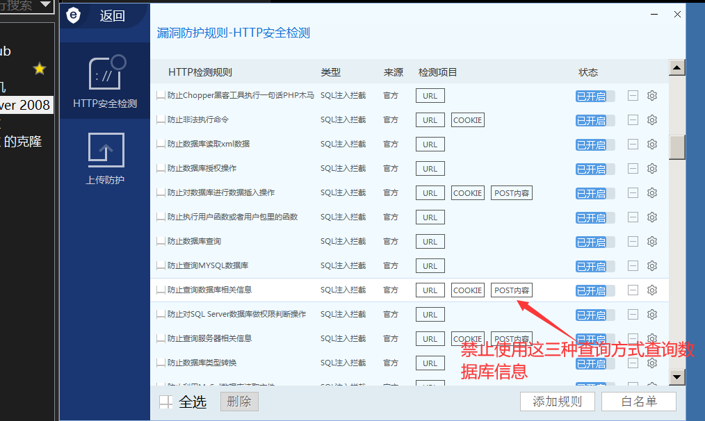 这是因为这些敏感关键字在安全狗的匹配规则中,如下图: