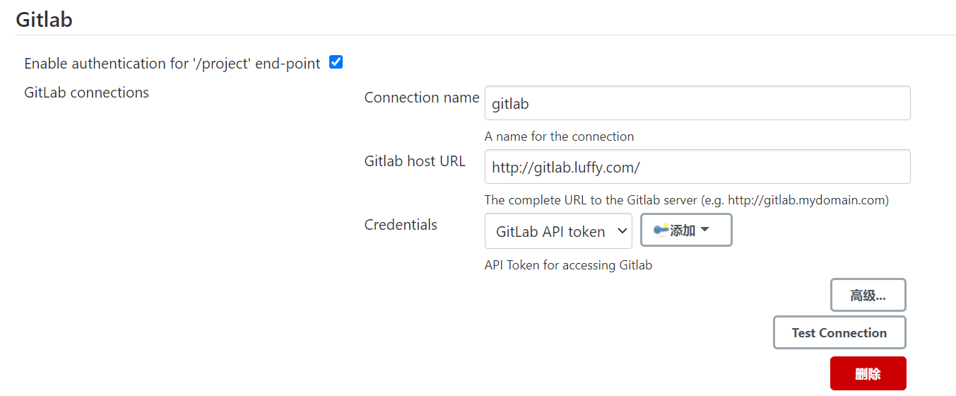 系统管理->系统配置->Gitlab,其中的API Token,需要从下个步骤中获取