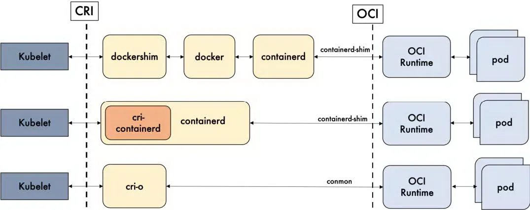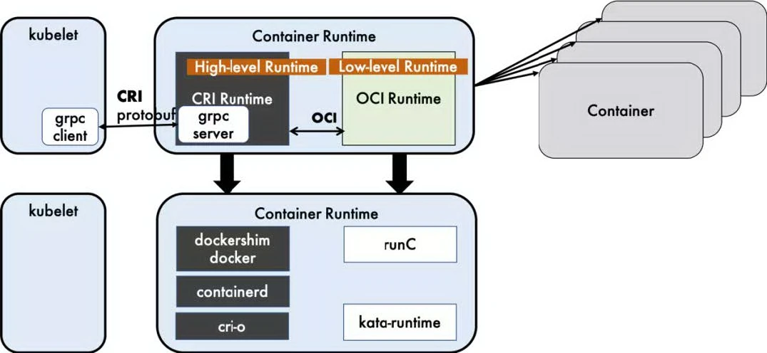 Kubelet 通过 CRI 和容器运行时进行通信,使得容器运行时能够像插件一样单独运行。可以说每个容器运行时都有自己的优势,这就允许用户更容易选择和替换自己的容器运行时。