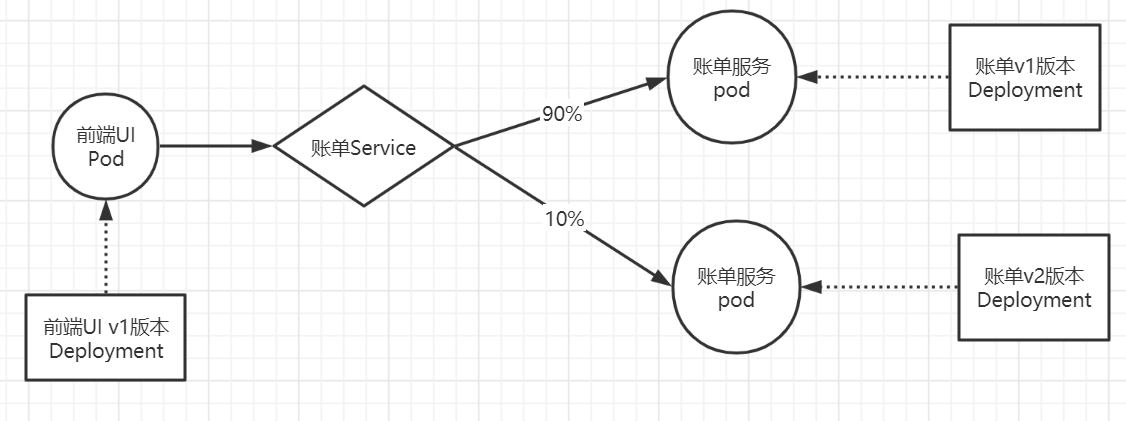 后台账单服务更新v2版本,前期规划90%的流量访问v1版本,导入10%的流量到v2版本