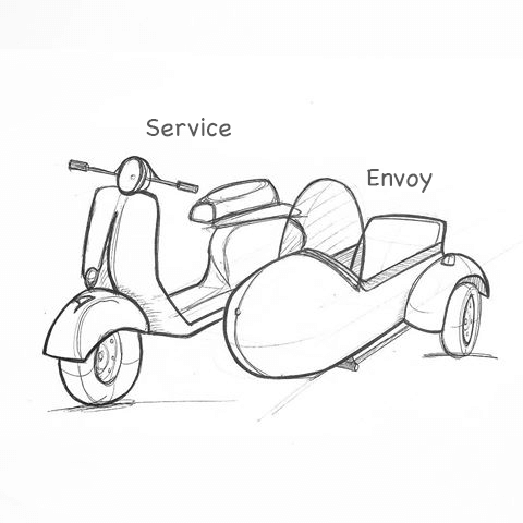 可以在服务旁运行,以平台无关的方式提供必要的特性,所有到服务的流量都通过 Envoy 代理,这里 Envoy 扮演的就是 Sidecar 的角色。