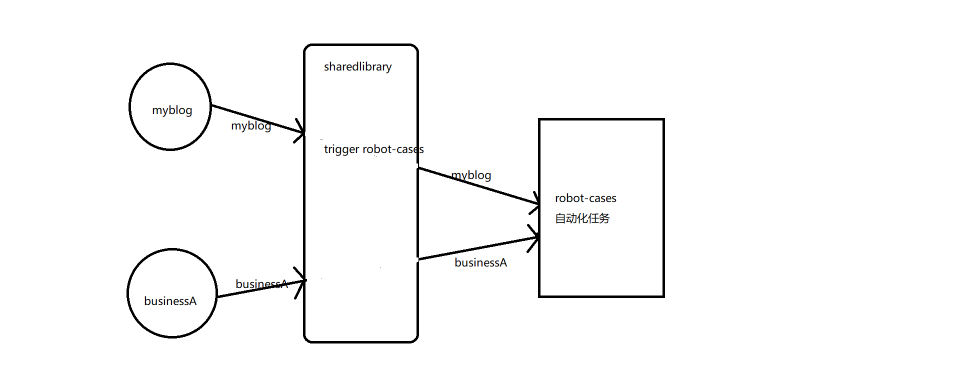 由于多个项目均需要触发自动构建,因此可以在library中抽象方法,实现接收comp参数,并在library中实现对robot-cases项目的触发。