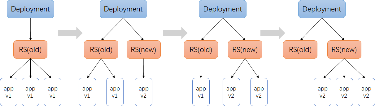 type: RollingUpdate #指定更新方式为滚动更新,默认策略,通过get deploy yaml查看