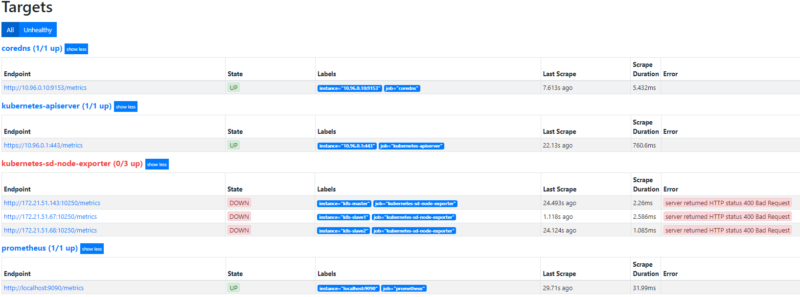 默认访问的地址是http://node-ip/10250/metrics,10250是kubelet API的服务端口,说明Prometheus的node类型的服务发现模式,默认是和kubelet的10250绑定的,而我们是期望使用node-exporter作为采集的指标来源,因此需要把访问的endpoint替换成http://node-ip:9100/metrics。