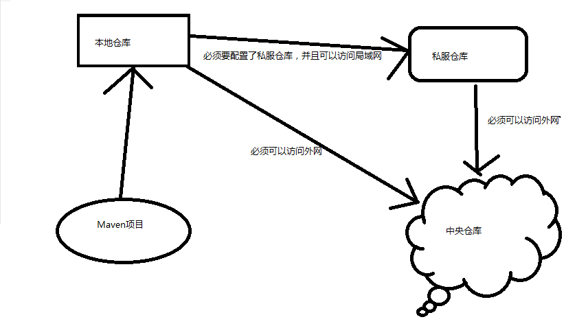 运行 Maven 的时候,Maven 所需要的任何包都是直接从本地仓库获取的。如果本地仓库没有,它会首先尝试从远程仓库下载构件至本地仓库,然后再使用本地仓库的包。
